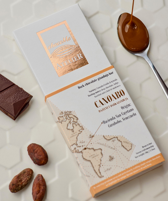 Az első Atelier bean to bar kollekcióban 10 különböző táblás csokoládét kínálunk olyan egzotikus vagy ritkán látott összetevőkkel, mint a panko morzsa vagy a kandírozott yuzu héj.